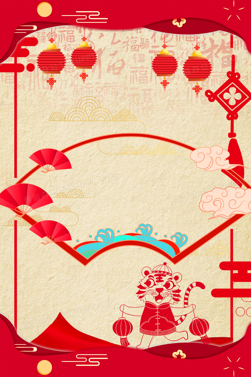 本作品内容为传统春节喜庆虎年边框背景, 格式为 psd, 大小19 MB, 图片尺寸为1181 x 1772, 作品中背景图片无需修改, 源文件无水印,可以直接使用, 欢迎使用熊猫办公。 如认为平台内容涉嫌侵权,可通过邮件:tousu@tukuppt.com提出书面通知,我们将及时处理。