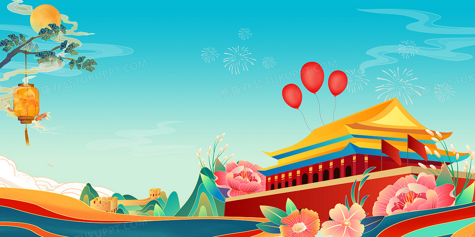 本作品内容为国潮中国风国庆72周年天安门背景, 格式为 psd, 大小71 MB, 图片尺寸为7087 x 3543, 作品中背景图片无需修改, 源文件无水印,可以直接使用, 欢迎使用熊猫办公。 如认为平台内容涉嫌侵权,可通过邮件:tousu@tukuppt.com提出书面通知,我们将及时处理。
