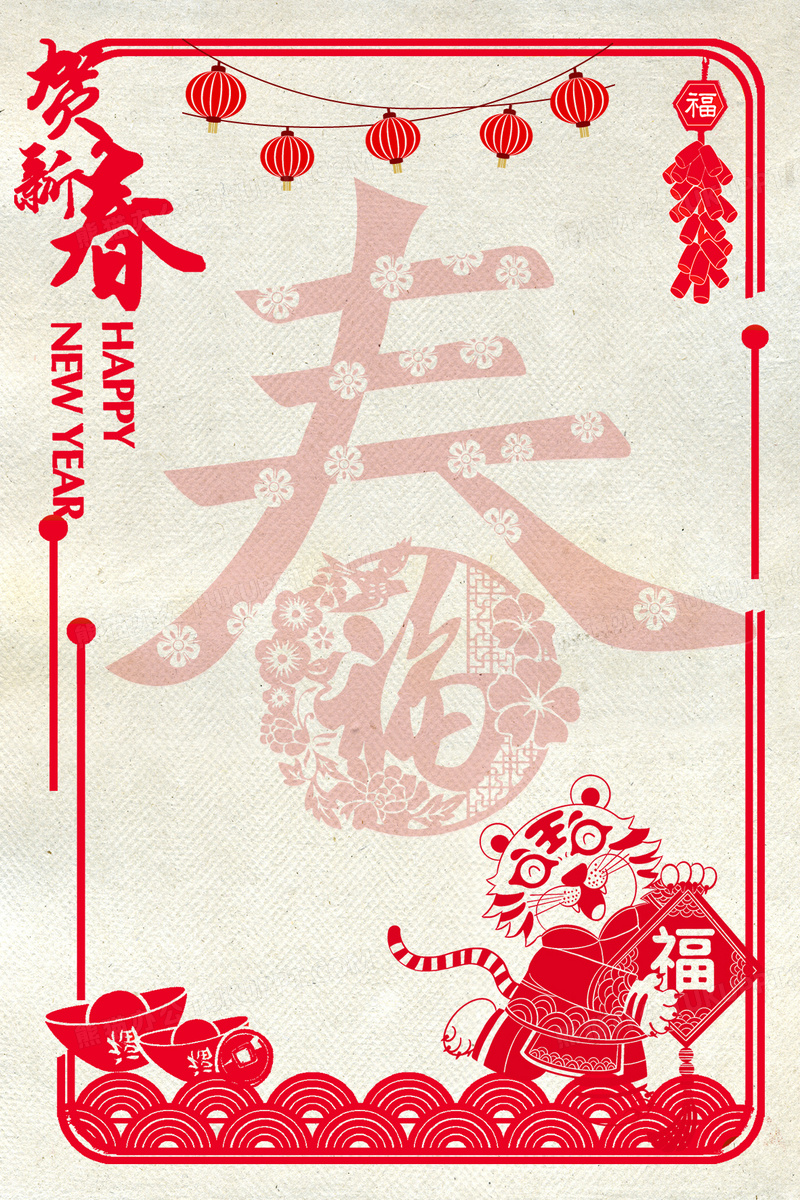 本作品内容为中国风剪纸喜庆虎年春节背景, 格式为 psd, 大小31 MB, 图片尺寸为1181 x 1772, 作品中背景图片无需修改, 源文件无水印,可以直接使用, 欢迎使用熊猫办公。 如认为平台内容涉嫌侵权,可通过邮件:tousu@tukuppt.com提出书面通知,我们将及时处理。