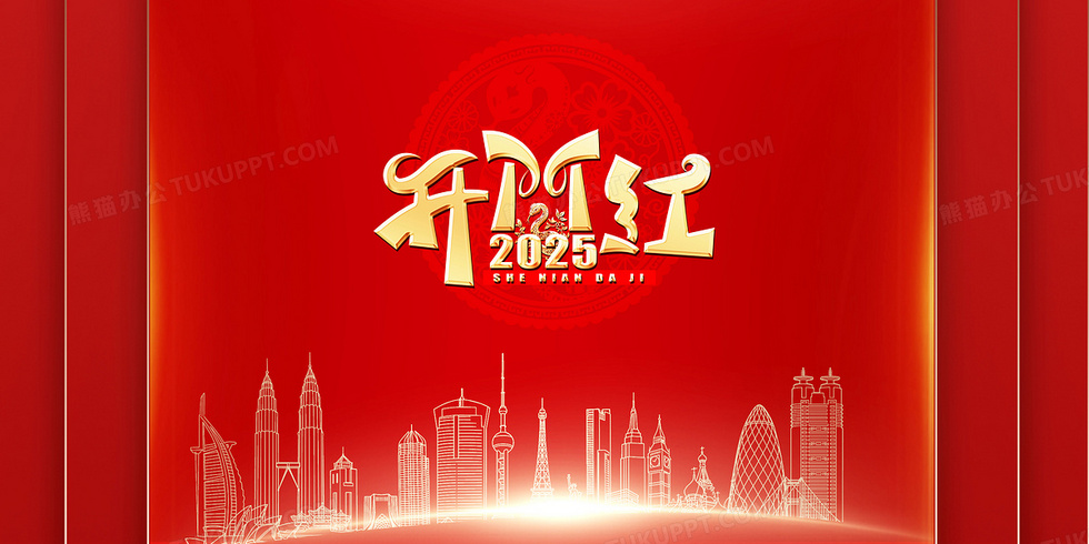 本作品内容为红色简约2025年蛇年新年开门红城市背景, 格式为 psd, 大小44 MB, 图片尺寸为4724 x 2362, 作品中背景图片无需修改, 源文件无水印,可以直接使用, 欢迎使用熊猫办公。 如认为平台内容涉嫌侵权,可通过邮件:tousu@tukuppt.com提出书面通知,我们将及时处理。