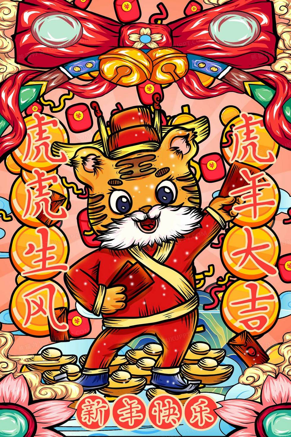 本作品内容为创意虎年新年快乐国潮插画背景, 格式为 psd, 大小29 MB, 图片尺寸为2362 x 3543, 作品中背景图片无需修改, 源文件无水印,可以直接使用, 欢迎使用熊猫办公。 如认为平台内容涉嫌侵权,可通过邮件:tousu@tukuppt.com提出书面通知,我们将及时处理。