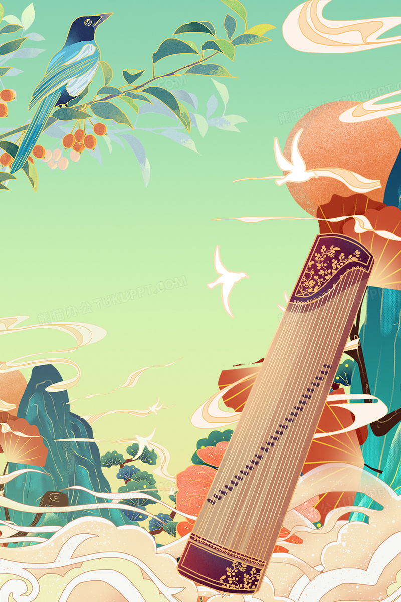 本作品内容为创意国潮风古筝背景, 格式为 psd, 大小34 MB, 图片尺寸为1181 x 1772, 作品中背景图片无需修改, 源文件无水印,可以直接使用, 欢迎使用熊猫办公。 如认为平台内容涉嫌侵权,可通过邮件:tousu@tukuppt.com提出书面通知,我们将及时处理。