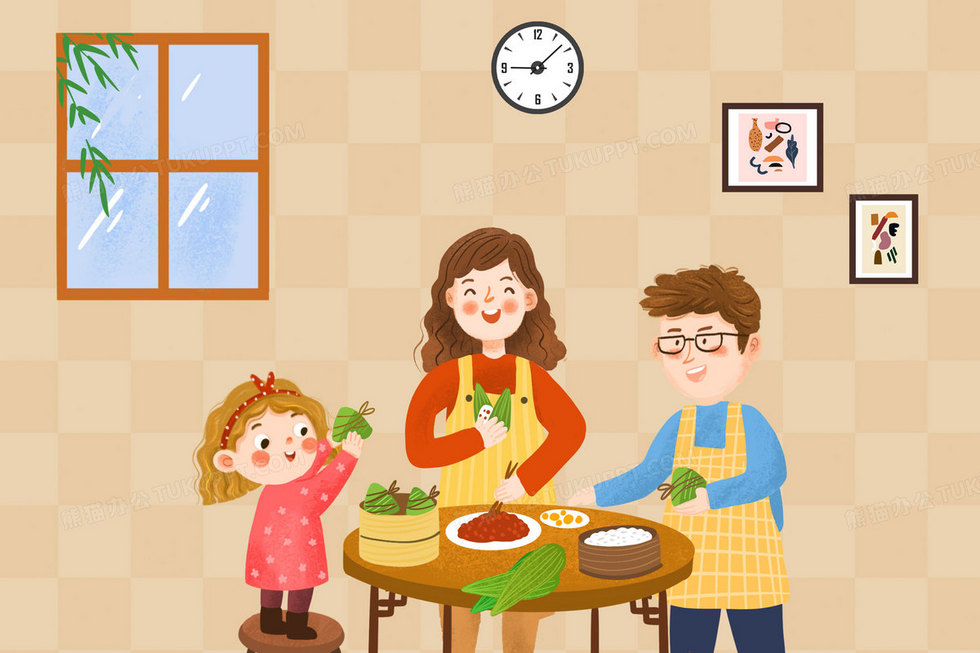 本作品内容为端午一家人包粽子手绘插画, 格式为 psd, 大小47 MB, 请使用软件PhotoShop(CS6)打开, 源文件无水印, 欢迎使用熊猫办公。 如认为平台内容涉嫌侵权,可通过邮件:tousu@tukuppt.com提出书面通知,我们将及时处理。