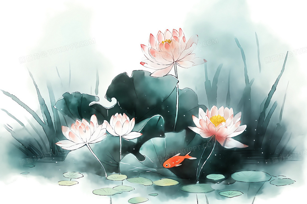 本作品内容为中国风水墨恬淡的荷花池, 格式为 jpg, 大小3 MB, 图片尺寸为2688 x 1792, 源文件无水印, 欢迎使用熊猫办公。 如认为平台内容涉嫌侵权,可通过邮件:tousu@tukuppt.com提出书面通知,我们将及时处理。