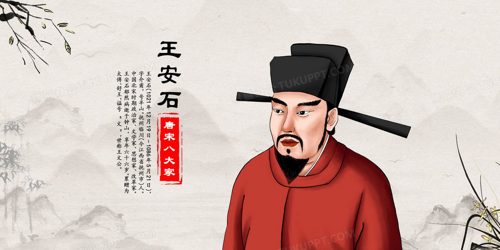 本作品内容为中国古代唐宋八大家之王安石人物介绍插画, 格式为 psd, 大小89 MB, 请使用软件PhotoShop(CC)打开, 源文件无水印, 欢迎使用熊猫办公。 如认为平台内容涉嫌侵权,可通过邮件:tousu@tukuppt.com提出书面通知,我们将及时处理。