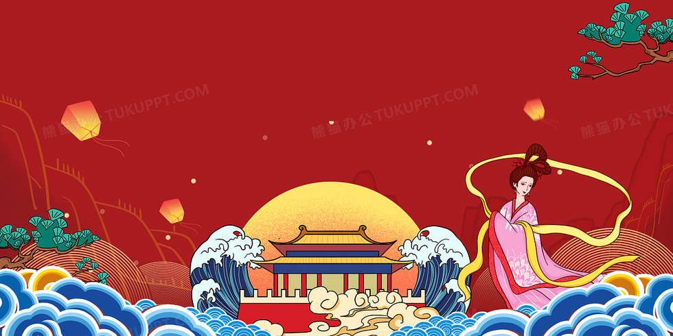 本作品内容为国庆中秋双节喜庆国潮中国风背景, 格式为 psd, 大小30 MB, 图片尺寸为4724 x 2362, 作品中背景图片无需修改, 源文件无水印,可以直接使用, 欢迎使用熊猫办公。 如认为平台内容涉嫌侵权,可通过邮件:tousu@tukuppt.com提出书面通知,我们将及时处理。