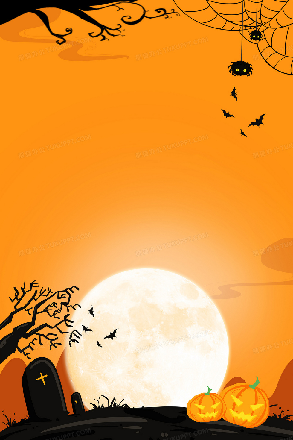 本作品内容为万圣节枯树墓碑南瓜西方节日背景, 格式为 psd, 大小57 MB, 图片尺寸为3543 x 5315, 作品中背景图片无需修改, 源文件无水印,可以直接使用, 欢迎使用熊猫办公。 如认为平台内容涉嫌侵权,可通过邮件:tousu@tukuppt.com提出书面通知,我们将及时处理。
