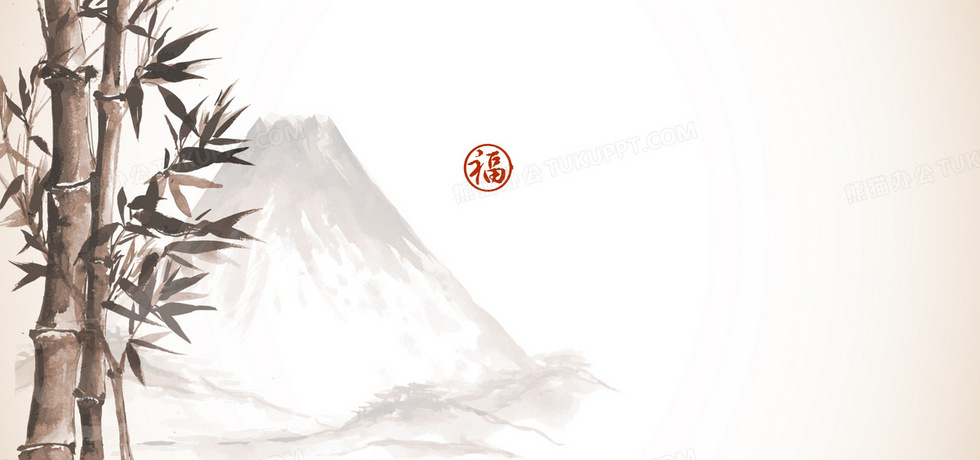 本作品内容为中国风山竹水墨背景, 格式为 psd, 图片尺寸为1920 x 900, 作品中背景图片无需修改, 源文件无水印,可以直接使用, 欢迎使用熊猫办公。 如认为平台内容涉嫌侵权,可通过邮件:tousu@tukuppt.com提出书面通知,我们将及时处理。