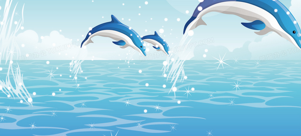 本作品内容为卡通海豚戏水背景banner, 格式为 psd, 图片尺寸为1920 x 870, 作品中背景图片无需修改, 源文件无水印,可以直接使用, 欢迎使用熊猫办公。 如认为平台内容涉嫌侵权,可通过邮件:tousu@tukuppt.com提出书面通知,我们将及时处理。