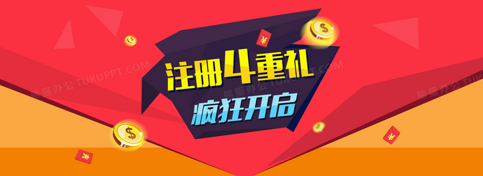 本作品内容为卡通红色注册四重礼背景, 格式为 psd, 图片尺寸为1920 x 700, 作品中背景图片无需修改, 源文件无水印,可以直接使用, 欢迎使用熊猫办公。 如认为平台内容涉嫌侵权,可通过邮件:tousu@tukuppt.com提出书面通知,我们将及时处理。