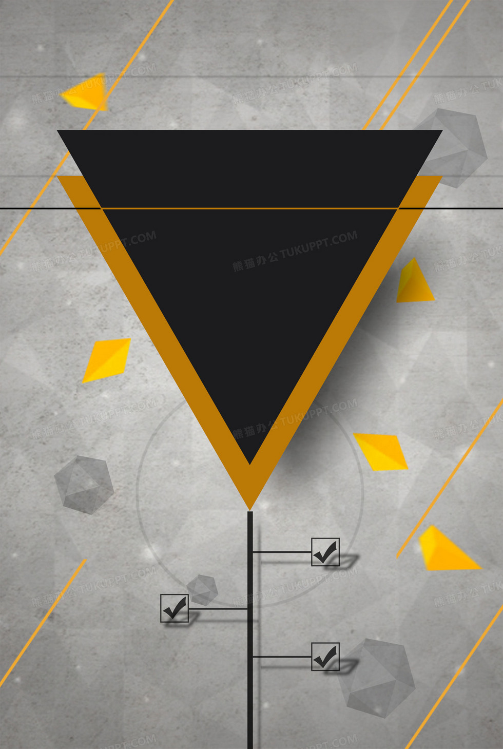 本作品内容为立体三角形背景, 格式为 psd, 图片尺寸为2389 x 3556, 作品中背景图片无需修改, 源文件无水印,可以直接使用, 欢迎使用熊猫办公。 如认为平台内容涉嫌侵权,可通过邮件:tousu@tukuppt.com提出书面通知,我们将及时处理。