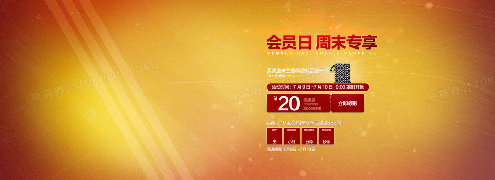 本作品内容为会员日背景, 格式为 psd, 图片尺寸为1920 x 700, 作品中背景图片无需修改, 源文件无水印,可以直接使用, 欢迎使用熊猫办公。 如认为平台内容涉嫌侵权,可通过邮件:tousu@tukuppt.com提出书面通知,我们将及时处理。