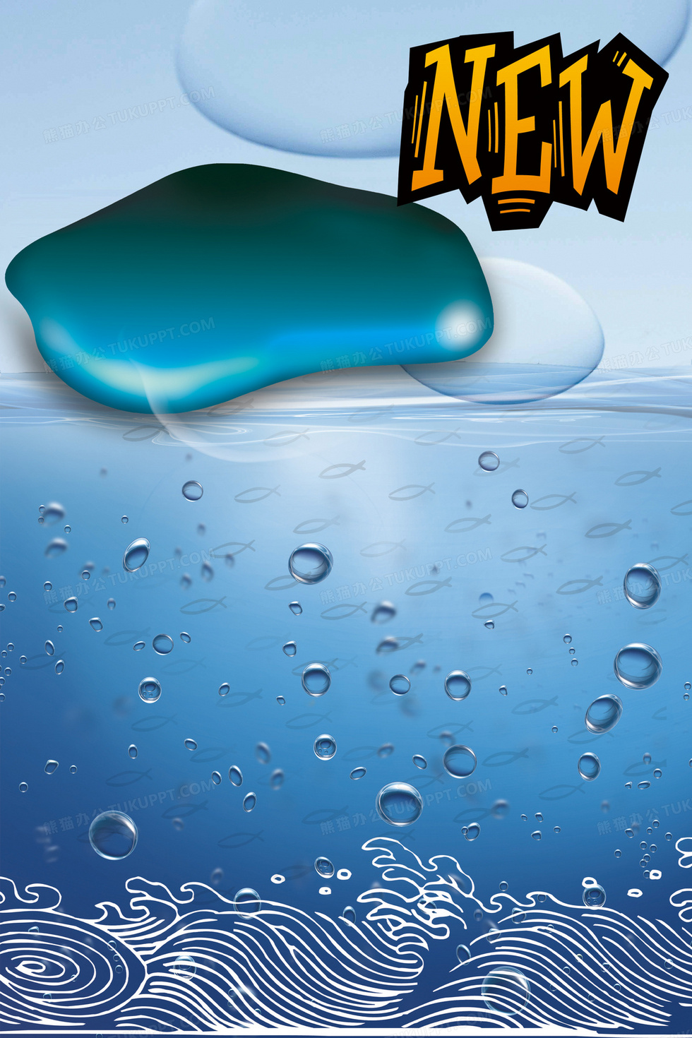 本作品内容为蓝色水波气泡新品波纹水珠氧气背景, 格式为 psd, 图片尺寸为2362 x 3543, 作品中背景图片无需修改, 源文件无水印,可以直接使用, 欢迎使用熊猫办公。 如认为平台内容涉嫌侵权,可通过邮件:tousu@tukuppt.com提出书面通知,我们将及时处理。