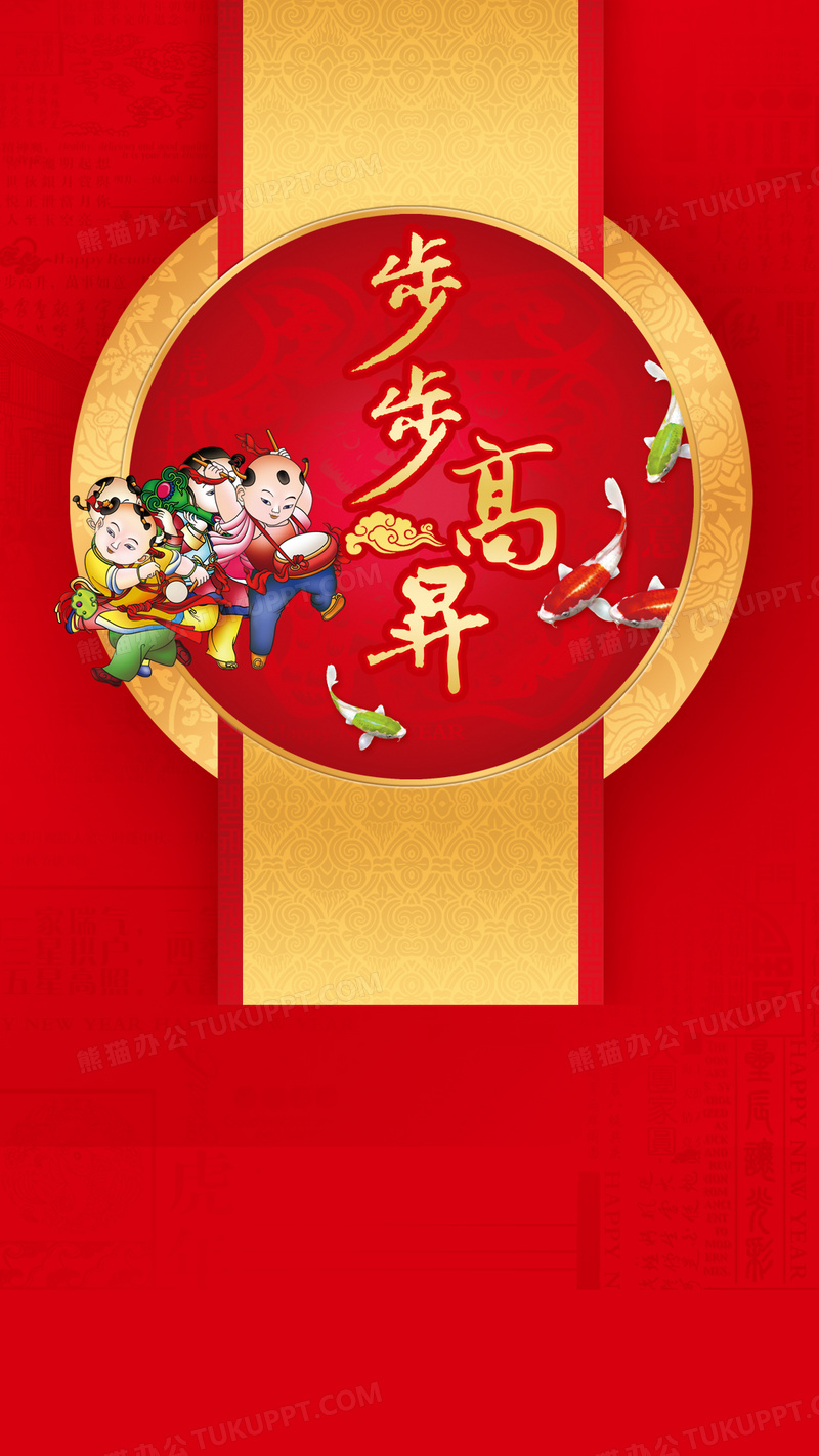 本作品内容为红色中国风步步高升源文件H5背景, 格式为 psd, 图片尺寸为1080 x 1920, 作品中背景图片无需修改, 源文件无水印,可以直接使用, 欢迎使用熊猫办公。 如认为平台内容涉嫌侵权,可通过邮件:tousu@tukuppt.com提出书面通知,我们将及时处理。
