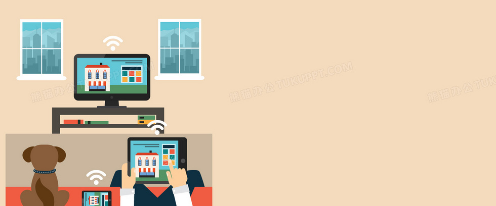 本作品内容为智能家居插画背景, 格式为 jpg, 图片尺寸为1920 x 800, 作品中背景图片无需修改, 源文件无水印,可以直接使用, 欢迎使用熊猫办公。 如认为平台内容涉嫌侵权,可通过邮件:tousu@tukuppt.com提出书面通知,我们将及时处理。