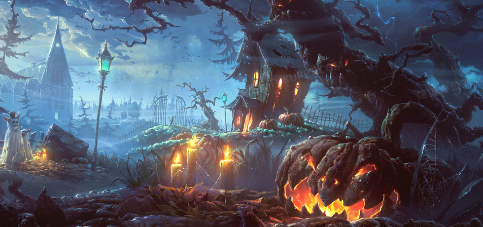 本作品内容为卡通风景恐怖背景banner, 格式为 jpg, 图片尺寸为1920 x 900, 作品中背景图片无需修改, 源文件无水印,可以直接使用, 欢迎使用熊猫办公。 如认为平台内容涉嫌侵权,可通过邮件:tousu@tukuppt.com提出书面通知,我们将及时处理。