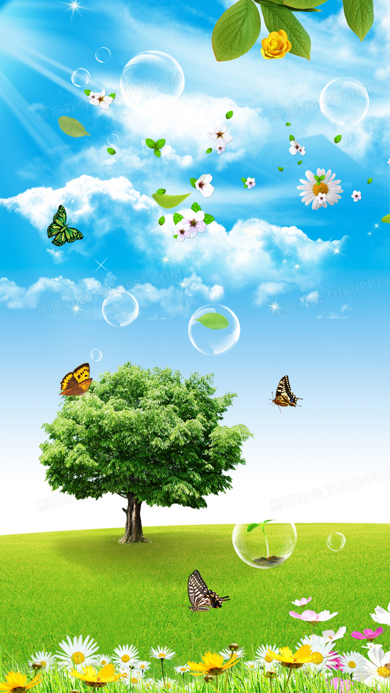 本作品内容为312植树节绿树蝴蝶清新自然H5背景, 格式为 psd, 图片尺寸为1080 x 1920, 作品中背景图片无需修改, 源文件无水印,可以直接使用, 欢迎使用熊猫办公。 如认为平台内容涉嫌侵权,可通过邮件:tousu@tukuppt.com提出书面通知,我们将及时处理。