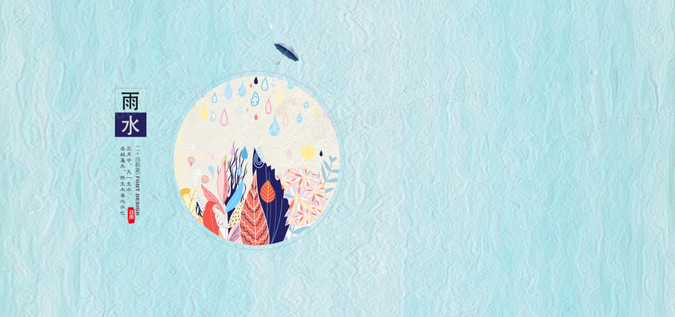 本作品内容为雨水节气海报背景, 格式为 psd, 图片尺寸为1920 x 900, 作品中背景图片无需修改, 源文件无水印,可以直接使用, 欢迎使用熊猫办公。 如认为平台内容涉嫌侵权,可通过邮件:tousu@tukuppt.com提出书面通知,我们将及时处理。