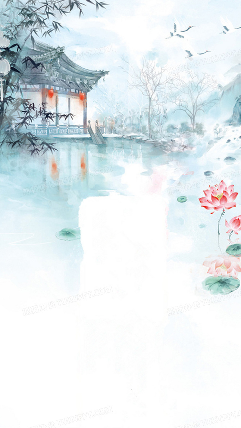 本作品内容为中国风荷塘凉亭H5背景素材, 格式为 jpg, 图片尺寸为1080 x 1920, 作品中背景图片无需修改, 源文件无水印,可以直接使用, 欢迎使用熊猫办公。 如认为平台内容涉嫌侵权,可通过邮件:tousu@tukuppt.com提出书面通知,我们将及时处理。