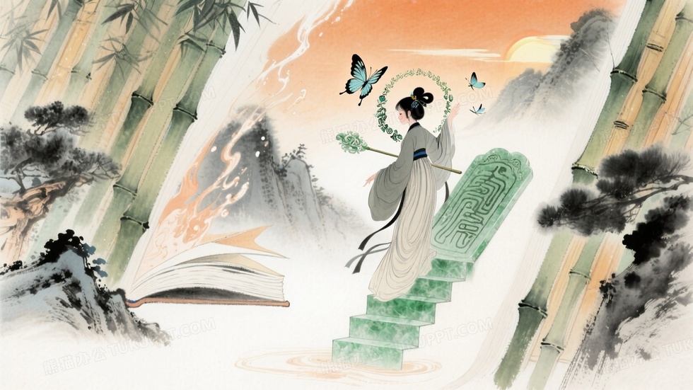 本作品内容为水墨淡彩幻想场景汉服女孩踏着青玉简阶梯攀登, 格式为 jpg, 大小1 MB, 图片尺寸为1664 x 936, 源文件无水印, 欢迎使用熊猫办公。 如认为平台内容涉嫌侵权,可通过邮件:tousu@tukuppt.com提出书面通知,我们将及时处理。