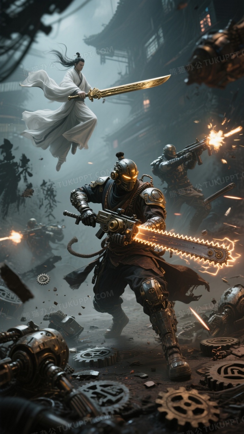 本作品内容为蒸汽朋克武者手持发光链锯剑冲锋, 格式为 jpg, 大小1 MB, 图片尺寸为936 x 1664, 源文件无水印, 欢迎使用熊猫办公。 如认为平台内容涉嫌侵权,可通过邮件:tousu@tukuppt.com提出书面通知,我们将及时处理。