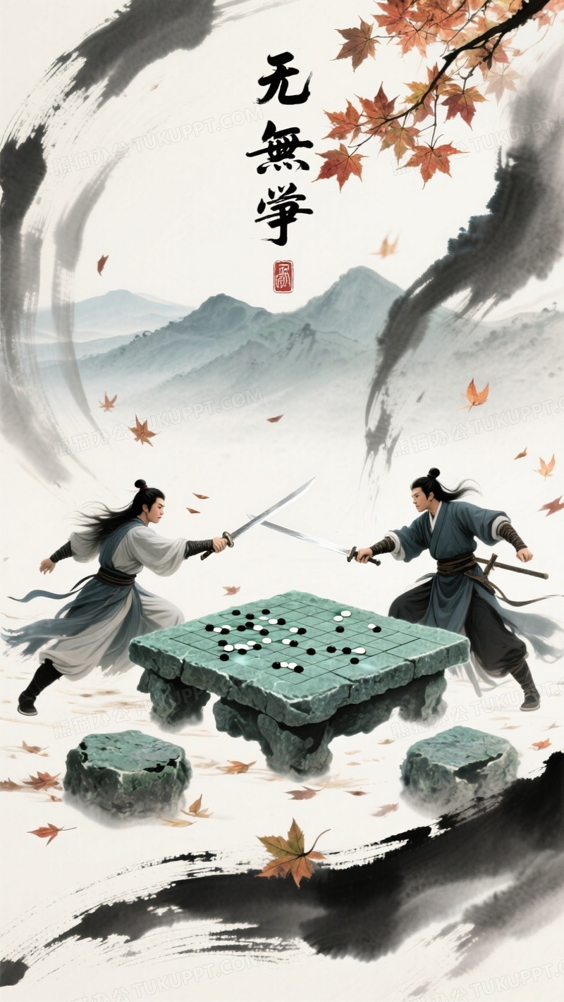 本作品内容为禅意武侠对战场景两名侠士在青石棋盘旁持剑对峙, 格式为 jpg, 大小1 MB, 图片尺寸为936 x 1664, 源文件无水印, 欢迎使用熊猫办公。 如认为平台内容涉嫌侵权,可通过邮件:tousu@tukuppt.com提出书面通知,我们将及时处理。