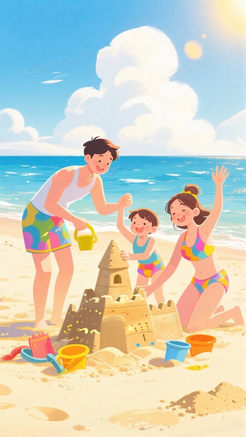 本作品内容为温馨家庭海边玩沙卡通插画, 格式为 jpg, 大小1 MB, 图片尺寸为936 x 1664, 源文件无水印, 欢迎使用熊猫办公。 如认为平台内容涉嫌侵权,可通过邮件:tousu@tukuppt.com提出书面通知,我们将及时处理。