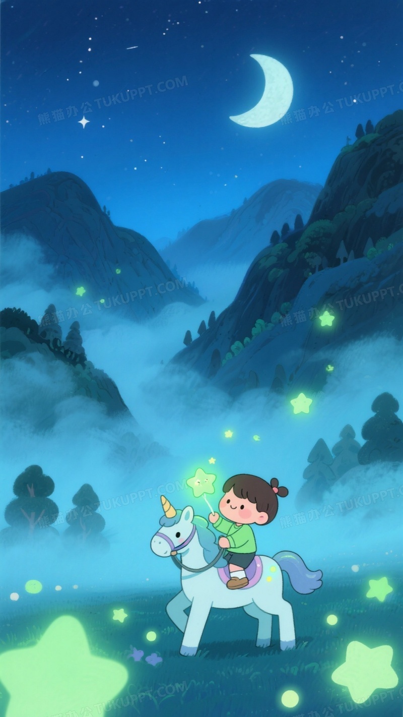 本作品内容为治愈风格的卡通插画梦幻夜晚的山谷中, 格式为 jpg, 大小1 MB, 图片尺寸为936 x 1664, 源文件无水印, 欢迎使用熊猫办公。 如认为平台内容涉嫌侵权,可通过邮件:tousu@tukuppt.com提出书面通知,我们将及时处理。