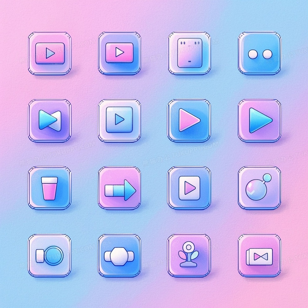 本作品内容为图标毛玻璃材质一套16个图标, 格式为 jpg, 大小1 MB, 图片尺寸为2048 x 2048, 源文件无水印, 欢迎使用熊猫办公。 如认为平台内容涉嫌侵权,可通过邮件:tousu@tukuppt.com提出书面通知,我们将及时处理。