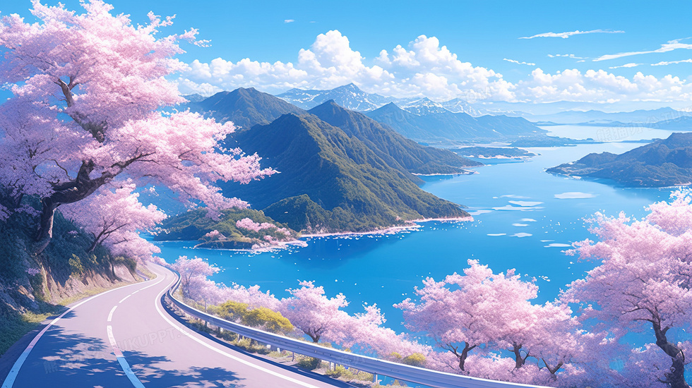 本作品内容为春天自然风景公路树花草海边插画, 格式为 jpg, 大小4 MB, 图片尺寸为2912 x 1632, 源文件无水印, 欢迎使用熊猫办公。 如认为平台内容涉嫌侵权,可通过邮件:tousu@tukuppt.com提出书面通知,我们将及时处理。