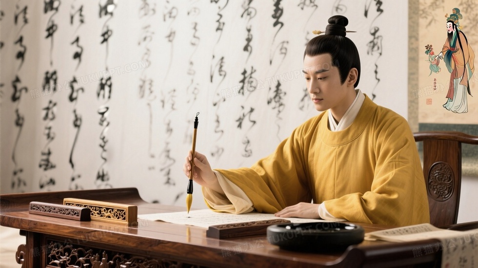 首页 > 插画 > 科技艺术 > 其他 > 书房场景书生执笔特写