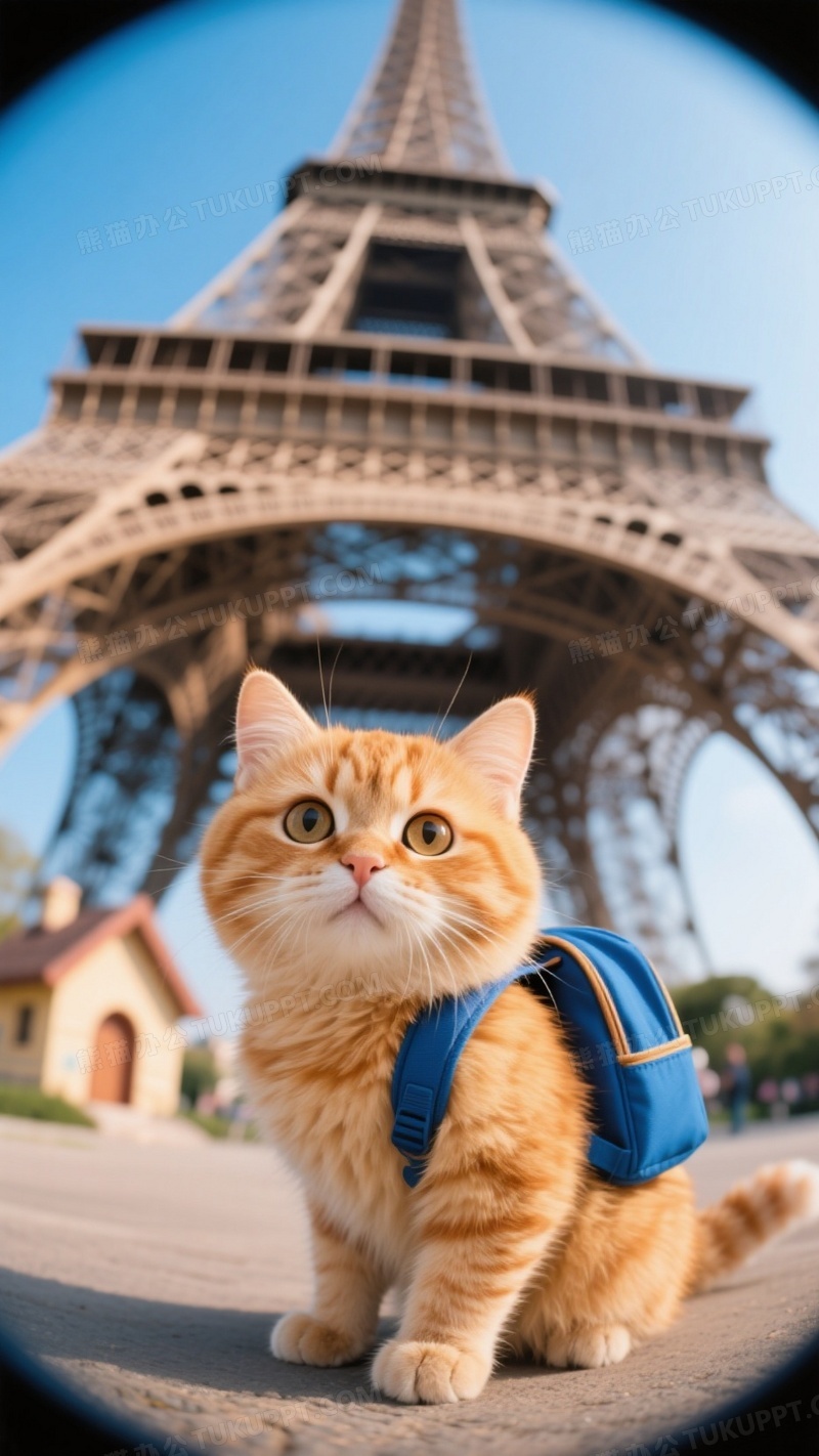 本作品内容为在艾菲尔铁塔前一只背着蓝色小书包的橘猫怼着鱼眼镜头卖萌, 格式为 jpg, 大小1 MB, 图片尺寸为936 x 1664, 源文件无水印, 欢迎使用熊猫办公。 如认为平台内容涉嫌侵权,可通过邮件:tousu@tukuppt.com提出书面通知,我们将及时处理。