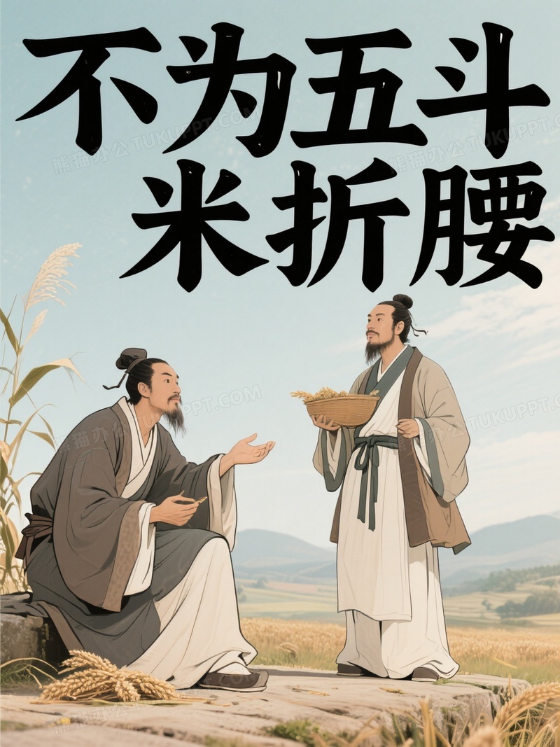 本作品内容为“不为五斗米折腰”, 格式为 jpg, 大小1 MB, 图片尺寸为1104 x 1472, 源文件无水印, 欢迎使用熊猫办公。 如认为平台内容涉嫌侵权,可通过邮件:tousu@tukuppt.com提出书面通知,我们将及时处理。