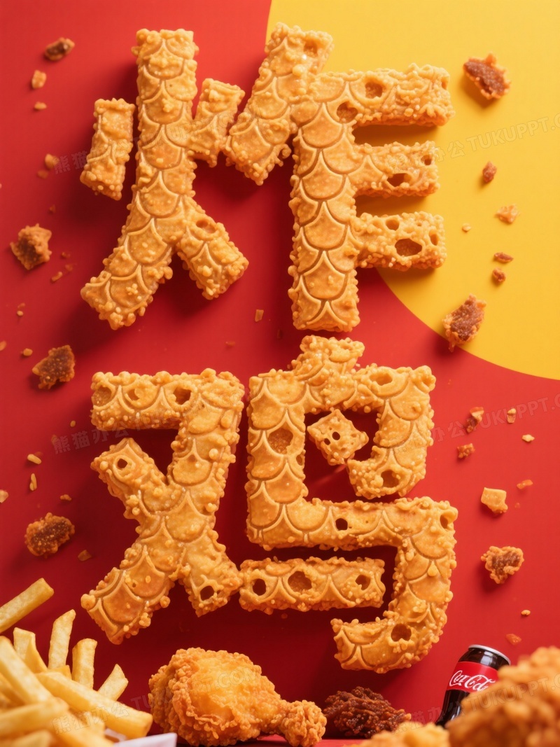 本作品内容为主体为炸鸡鳞片质感的立体特效字, 格式为 jpg, 大小1 MB, 图片尺寸为1104 x 1472, 源文件无水印, 欢迎使用熊猫办公。 如认为平台内容涉嫌侵权,可通过邮件:tousu@tukuppt.com提出书面通知,我们将及时处理。