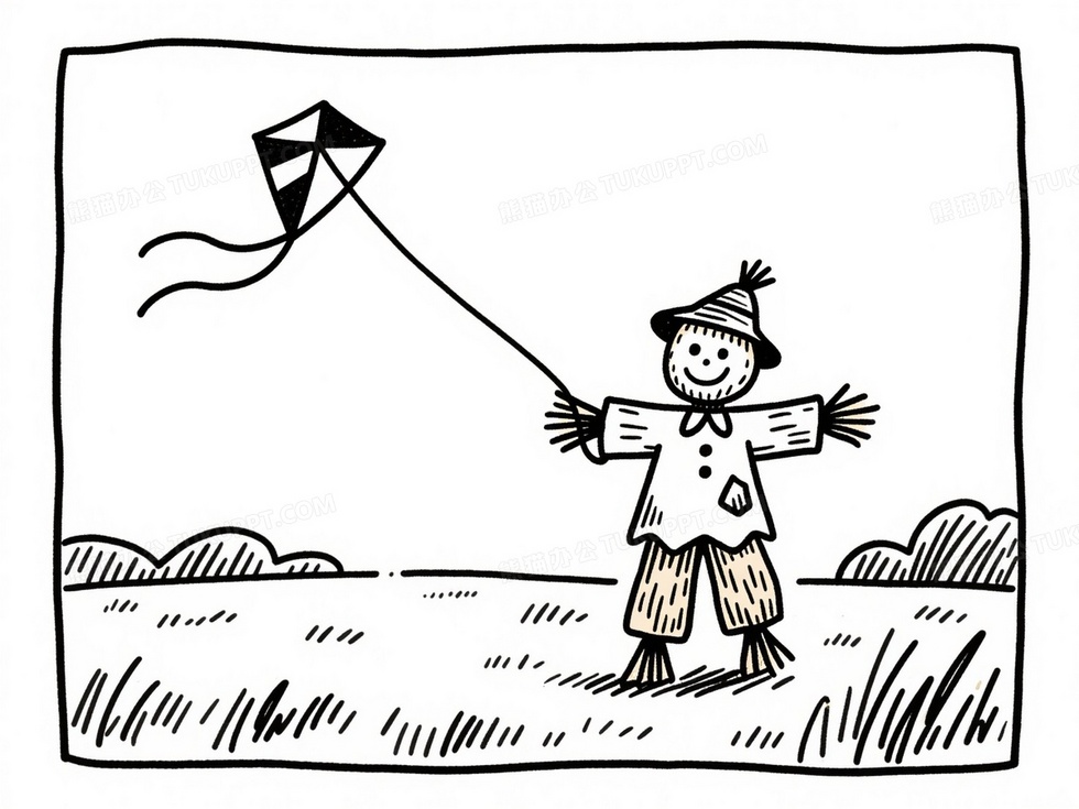 本作品内容为野外稻草人放风筝可爱趣味涂鸦插画黑白线条, 格式为 jpg, 大小1 MB, 图片尺寸为1472 x 1104, 源文件无水印, 欢迎使用熊猫办公。 如认为平台内容涉嫌侵权,可通过邮件:tousu@tukuppt.com提出书面通知,我们将及时处理。