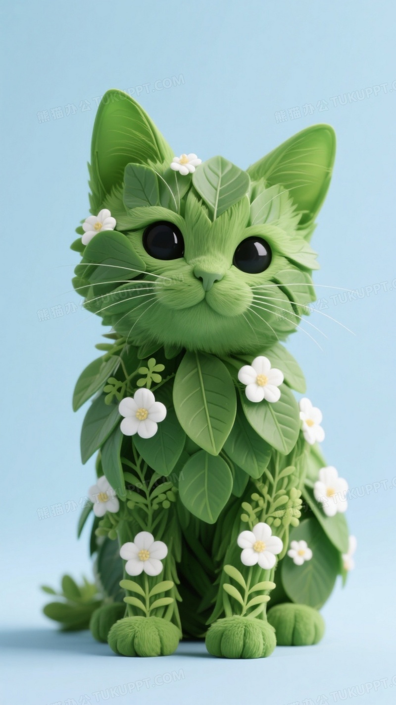 本作品内容为小猫咪以绿色叶子构成身体, 格式为 jpg, 大小1 MB, 图片尺寸为936 x 1664, 源文件无水印, 欢迎使用熊猫办公。 如认为平台内容涉嫌侵权,可通过邮件:tousu@tukuppt.com提出书面通知,我们将及时处理。