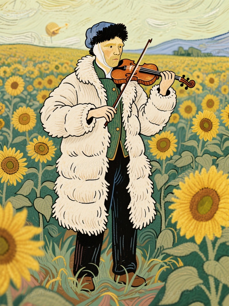 本作品内容为梵高穿着鹅毛羽绒服站在向日葵地里, 格式为 jpg, 大小1 MB, 图片尺寸为1104 x 1472, 源文件无水印, 欢迎使用熊猫办公。 如认为平台内容涉嫌侵权,可通过邮件:tousu@tukuppt.com提出书面通知,我们将及时处理。