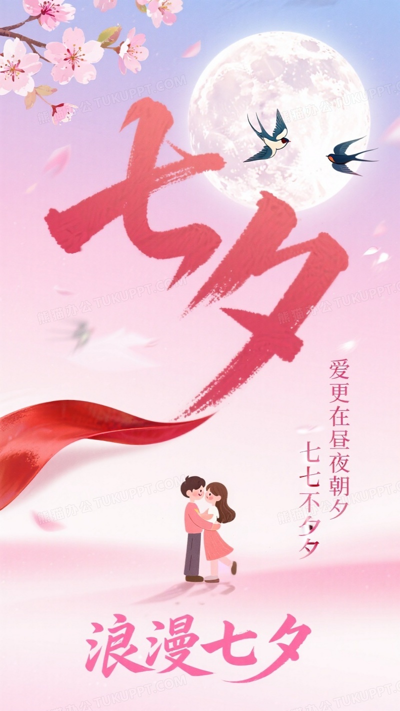 本作品内容为浪漫七夕主题海报粉色渐变背景, 格式为 jpg, 大小1 MB, 图片尺寸为936 x 1664, 源文件无水印, 欢迎使用熊猫办公。 如认为平台内容涉嫌侵权,可通过邮件:tousu@tukuppt.com提出书面通知,我们将及时处理。