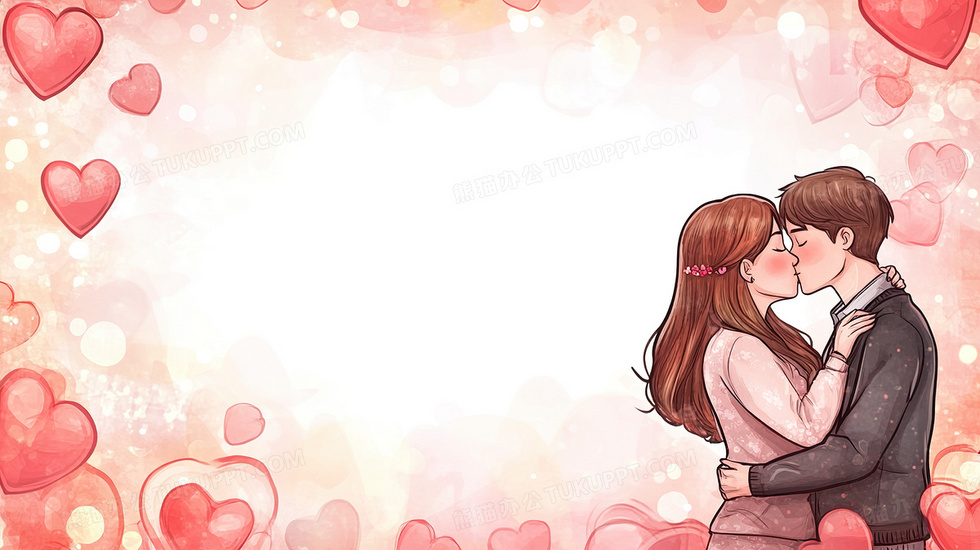 本作品内容为粉色卡通风情侣亲吻情人节背景, 格式为 jpg, 大小2 MB, 图片尺寸为2912 x 1632, 作品中背景图片无需修改, 源文件无水印,可以直接使用, 欢迎使用熊猫办公。 如认为平台内容涉嫌侵权,可通过邮件:tousu@tukuppt.com提出书面通知,我们将及时处理。