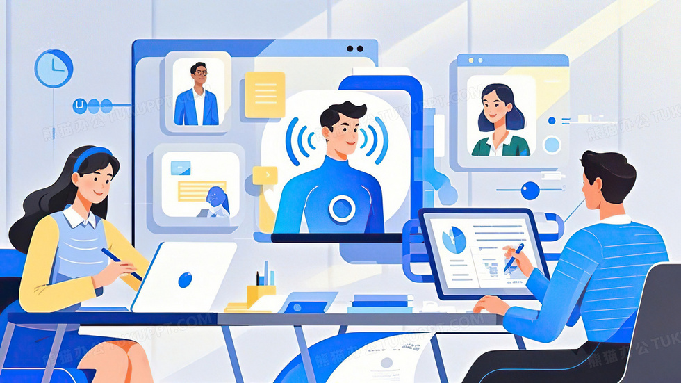 本作品内容为远程办公电脑工作职员商务智能科技办公插画, 格式为 jpg, 大小4 MB, 图片尺寸为3072 x 1728, 源文件无水印, 欢迎使用熊猫办公。 如认为平台内容涉嫌侵权,可通过邮件:tousu@tukuppt.com提出书面通知,我们将及时处理。