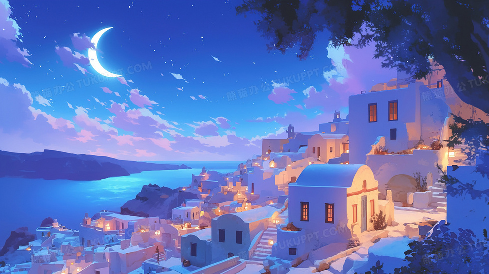 本作品内容为夜晚海边度假村海岛建筑风光插画, 格式为 jpg, 大小3 MB, 图片尺寸为2912 x 1632, 源文件无水印, 欢迎使用熊猫办公。 如认为平台内容涉嫌侵权,可通过邮件:tousu@tukuppt.com提出书面通知,我们将及时处理。