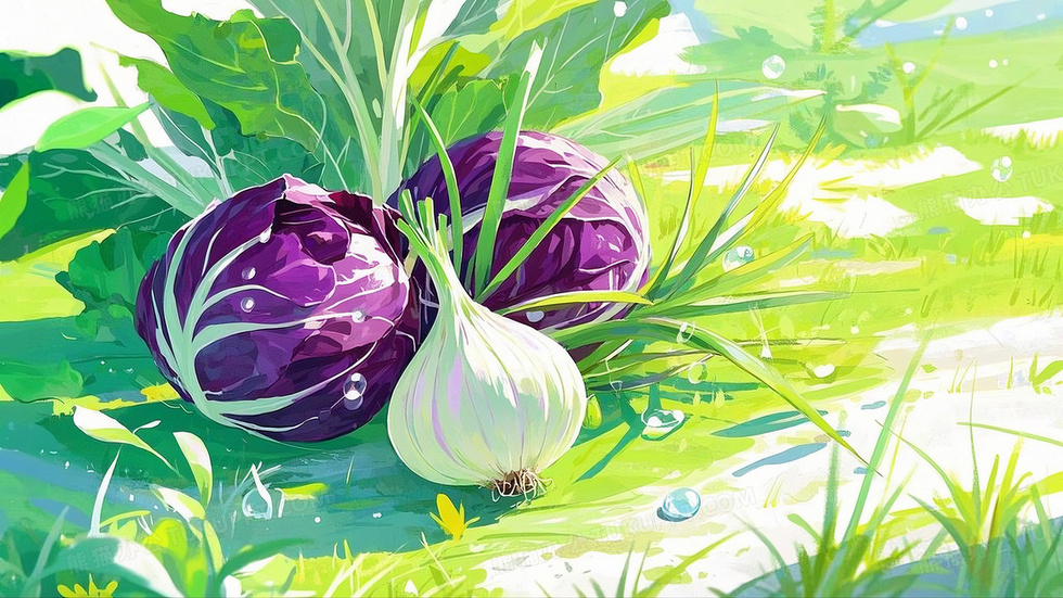 本作品内容为扁平清新自然紫甘蓝和大蒜蔬菜场景插画, 格式为 jpg, 大小3 MB, 图片尺寸为2720 x 1530, 源文件无水印, 欢迎使用熊猫办公。 如认为平台内容涉嫌侵权,可通过邮件:tousu@tukuppt.com提出书面通知,我们将及时处理。