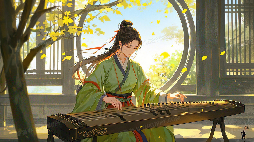 本作品内容为古代人物弹琴琴棋书画传统文化插画, 格式为 jpg, 大小5 MB, 图片尺寸为3072 x 1728, 源文件无水印, 欢迎使用熊猫办公。 如认为平台内容涉嫌侵权,可通过邮件:tousu@tukuppt.com提出书面通知,我们将及时处理。