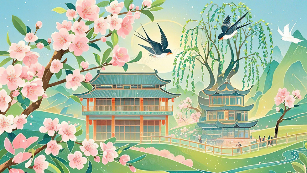 本作品内容为春天风景大自然桃花国潮风建筑插画, 格式为 jpg, 大小5 MB, 图片尺寸为3072 x 1728, 源文件无水印, 欢迎使用熊猫办公。 如认为平台内容涉嫌侵权,可通过邮件:tousu@tukuppt.com提出书面通知,我们将及时处理。
