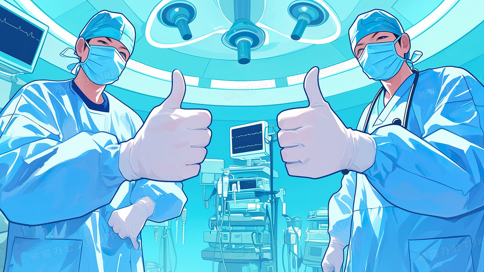 本作品内容为医生在手术室里做点赞手势插画, 格式为 jpg, 大小3 MB, 图片尺寸为2912 x 1632, 源文件无水印, 欢迎使用熊猫办公。 如认为平台内容涉嫌侵权,可通过邮件:tousu@tukuppt.com提出书面通知,我们将及时处理。