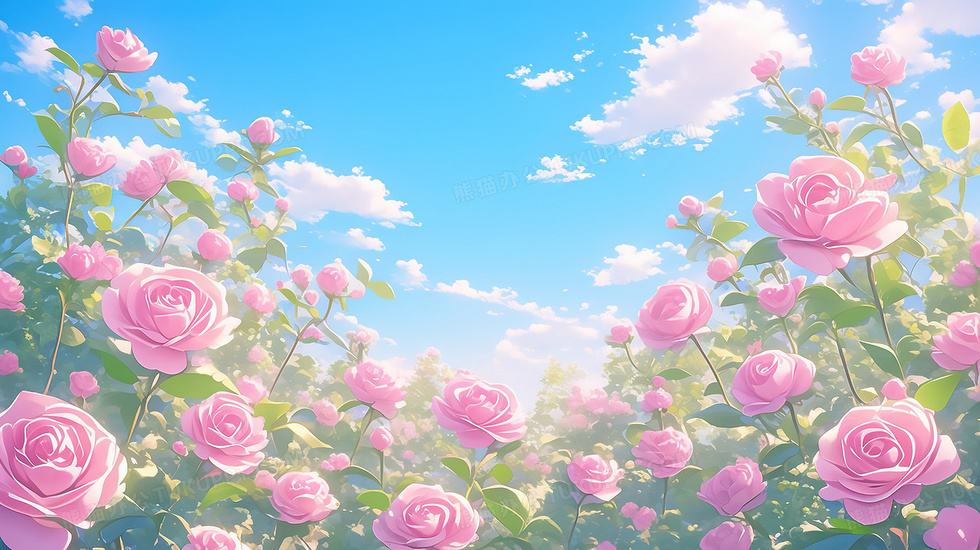 唯美粉色玫瑰花高清壁纸插画