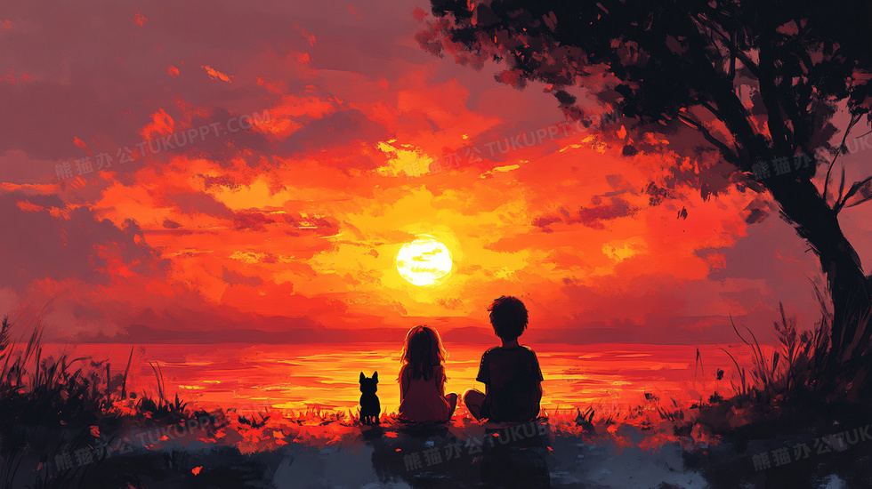 本作品内容为情侣夕阳剪影风景插画, 格式为 jpg, 大小7 MB, 图片尺寸为2912 x 1632, 源文件无水印, 欢迎使用熊猫办公。 如认为平台内容涉嫌侵权,可通过邮件:tousu@tukuppt.com提出书面通知,我们将及时处理。