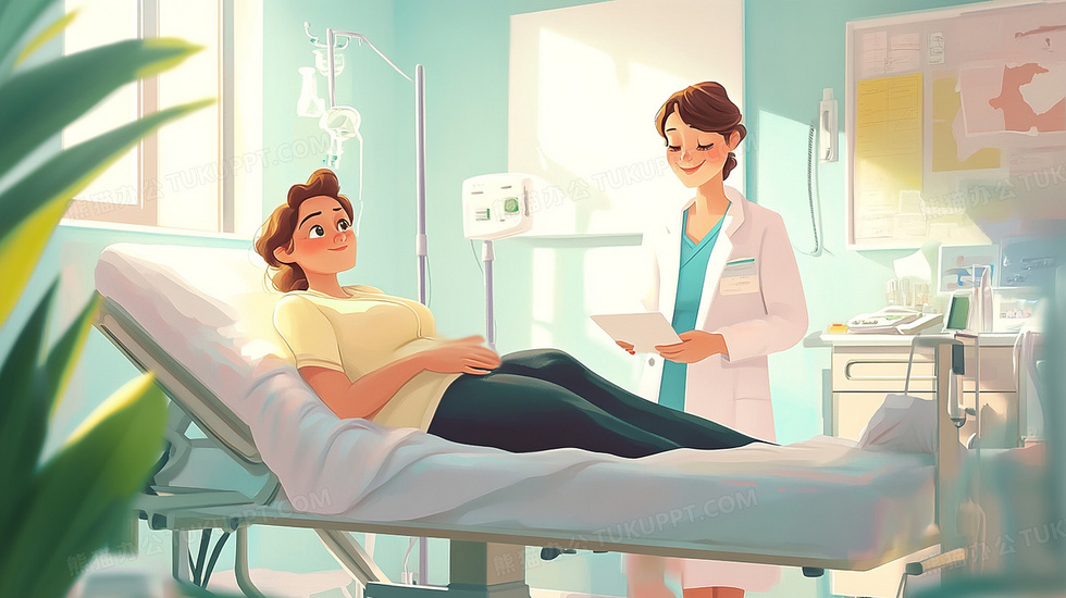 本作品内容为医务室里医生给孕妇做检查卡通插画, 格式为 jpg, 大小2 MB, 图片尺寸为2912 x 1632, 源文件无水印, 欢迎使用熊猫办公。 如认为平台内容涉嫌侵权,可通过邮件:tousu@tukuppt.com提出书面通知,我们将及时处理。