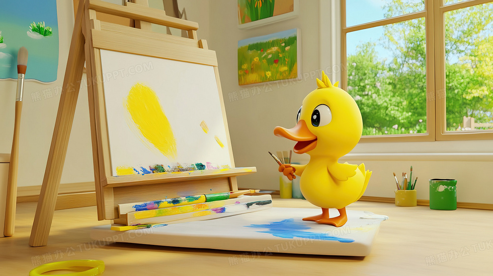 本作品内容为画室内认真作画的可爱卡通动物鸭子画家插画, 格式为 jpg, 大小3 MB, 图片尺寸为2912 x 1632, 源文件无水印, 欢迎使用熊猫办公。 如认为平台内容涉嫌侵权,可通过邮件:tousu@tukuppt.com提出书面通知,我们将及时处理。