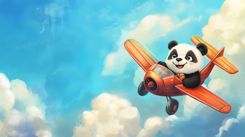 本作品内容为蓝天白云中开飞机的可爱卡通熊猫飞行员插画, 格式为 jpg, 大小3 MB, 图片尺寸为2912 x 1632, 源文件无水印, 欢迎使用熊猫办公。 如认为平台内容涉嫌侵权,可通过邮件:tousu@tukuppt.com提出书面通知,我们将及时处理。